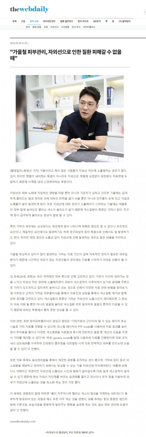 [hteWebdaily] "가을철 피부관리, 자외선으로 인한 질환 피해갈 수 없을때" 페이지 정보 작성자 포미성형외과 작성일18-10-23 17:41 조회2,265회 댓글0건 관련링크 이전글 다음글 목록 본문 - 댓글목록 등록된 댓글이 없습니다. 이전글 다음글 목록