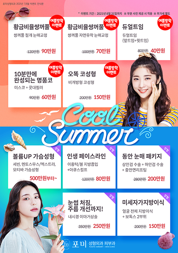 포미 7,8월 이벤트1 페이지 정보 작성자 포미성형외과 작성일21-07-01 12:49 조회3,096회 관련링크 이전글 다음글 목록 답변 본문 포미 7,8월 이벤트1 이전글 다음글 목록 답변