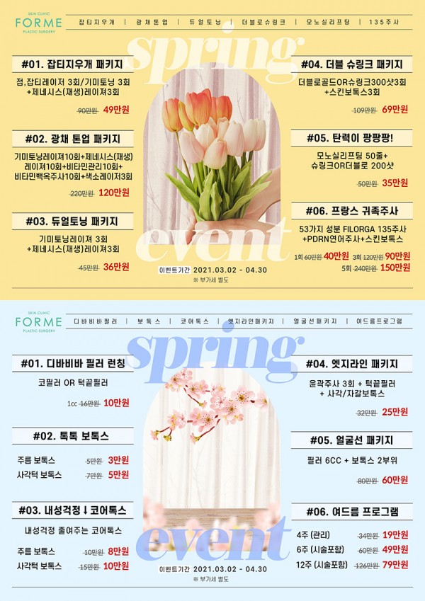 포미 3,4월 이벤트2 페이지 정보 작성자 포미성형외과 작성일21-03-02 16:18 조회4,550회 관련링크 이전글 다음글 목록 답변 본문 포미 3,4월 이벤트2 이전글 다음글 목록 답변