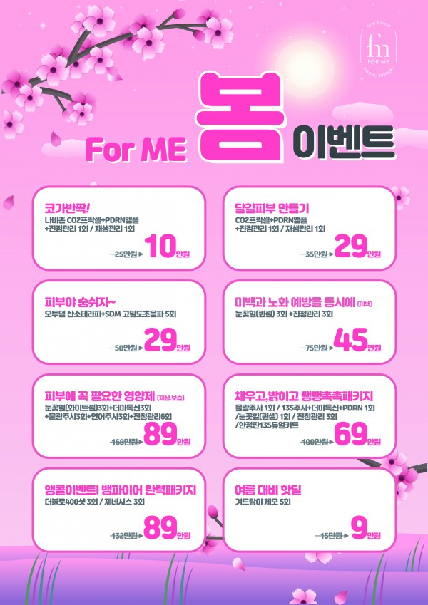 #1 포미에서 "봄을 준비해 봄~" 페이지 정보 작성자 포미성형외과 작성일19-03-04 21:23 조회3,336회 관련링크 이전글 다음글 목록 답변 본문 - 이전글 다음글 목록 답변