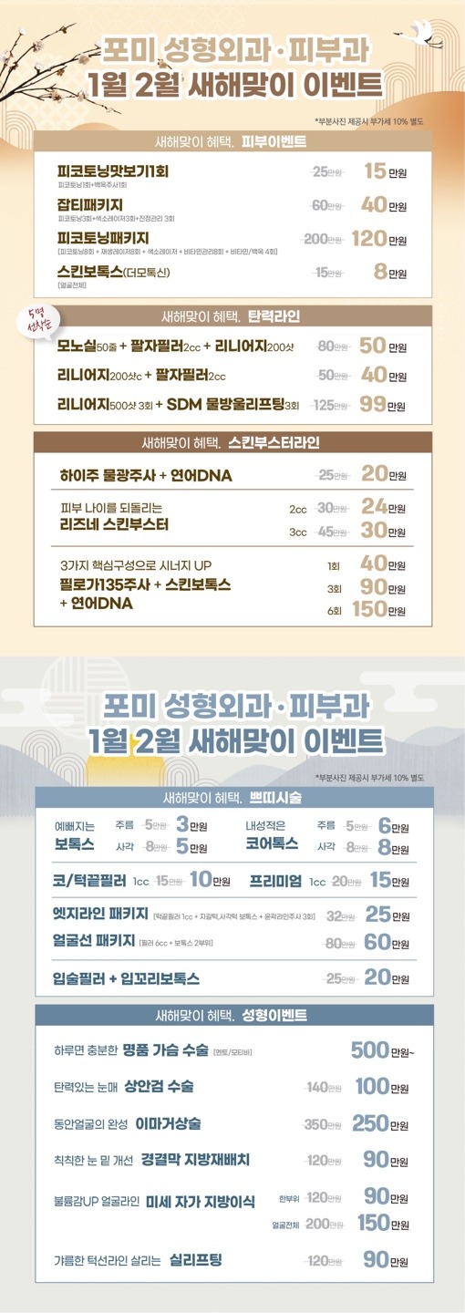 새해이벤트 페이지 정보 작성자 포미성형외과 작성일24-01-03 15:25 조회6,000회 관련링크 이전글 다음글 목록 답변 본문 카카오톡문의 : https://han.gl/vuNkEO 전화문의 : 054-273-0052 이전글 다음글 목록 답변
