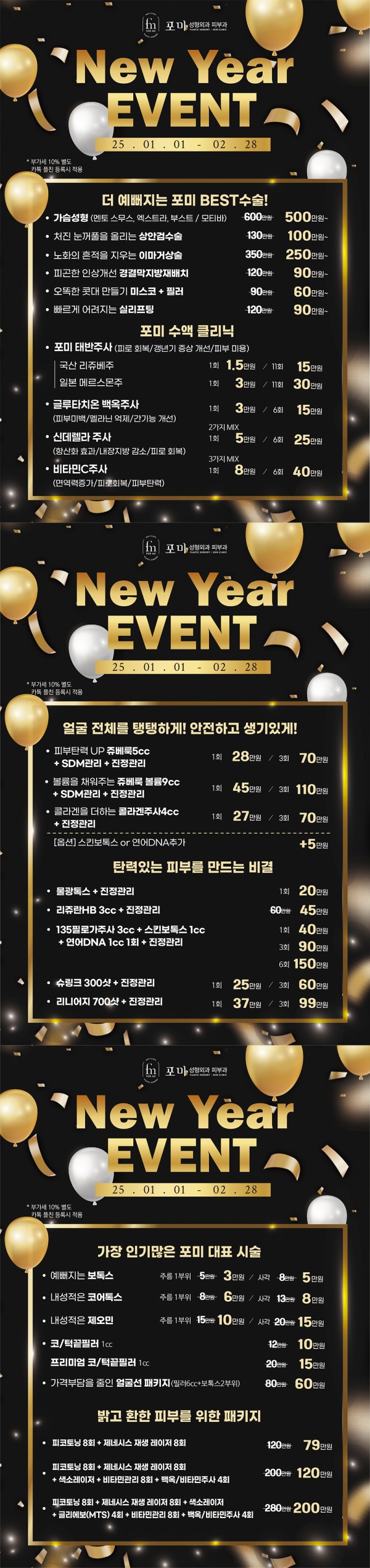 2025 New Year Event 페이지 정보 작성자 포미성형외과 작성일24-12-31 11:44 조회2,499회 관련링크 이전글 다음글 목록 답변 본문 2025년 맞이 새해 이벤트 입니다! 이전글 다음글 목록 답변