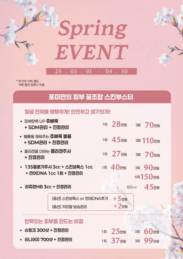2025 Spring Event!! 페이지 정보 작성자 포미성형외과 작성일25-03-04 12:11 조회2,862회 관련링크 이전글 다음글 목록 답변 본문 2025 SPRING EVENT 입니다. 이전글 다음글 목록 답변